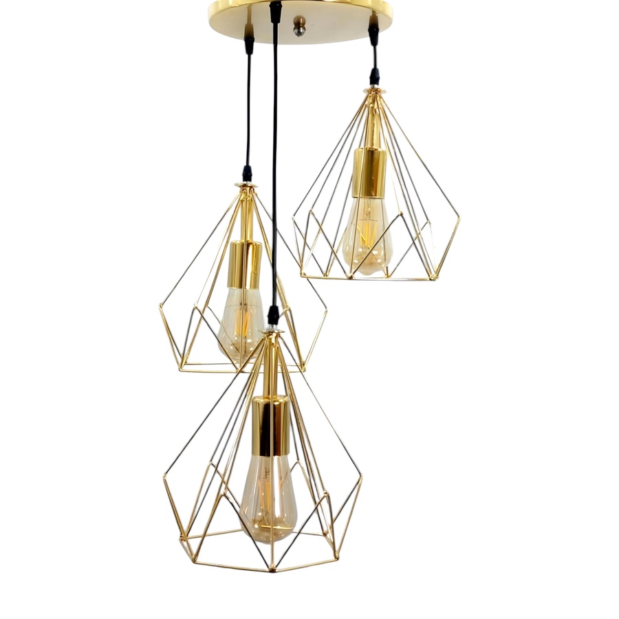 دلاية ثلاثي ماسة ذهبي لوكس بتصميم فاخر ومواد عالية الجودة – قطعة فنية أنيقة تضيف لمسة من الفخامة لأي غرفة، مع إضاءة مثالية وسهولة في التركيب